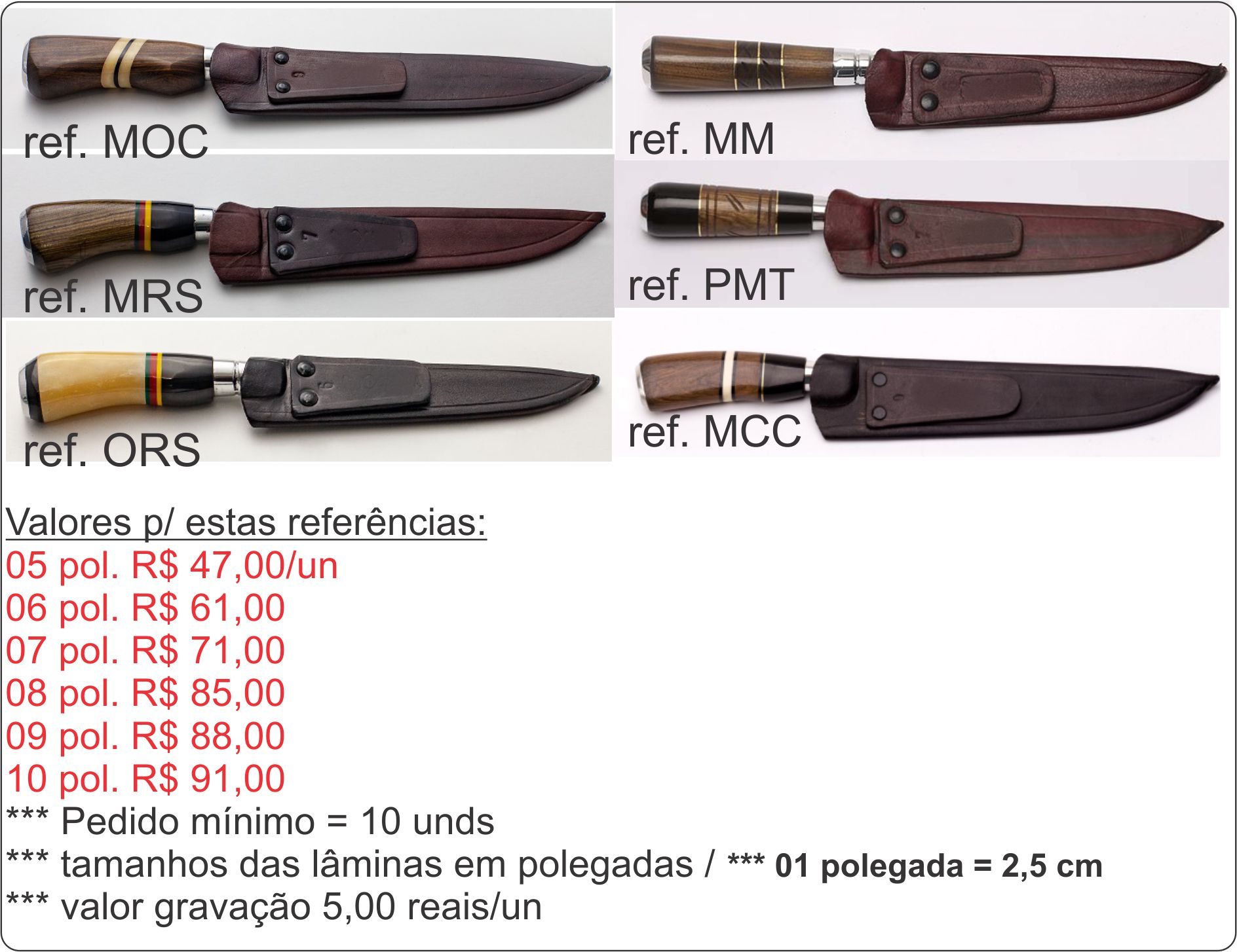 TAMANHOS DISPONÍVEIS DE LÂMINA : 05 A 10 POLEGADAS